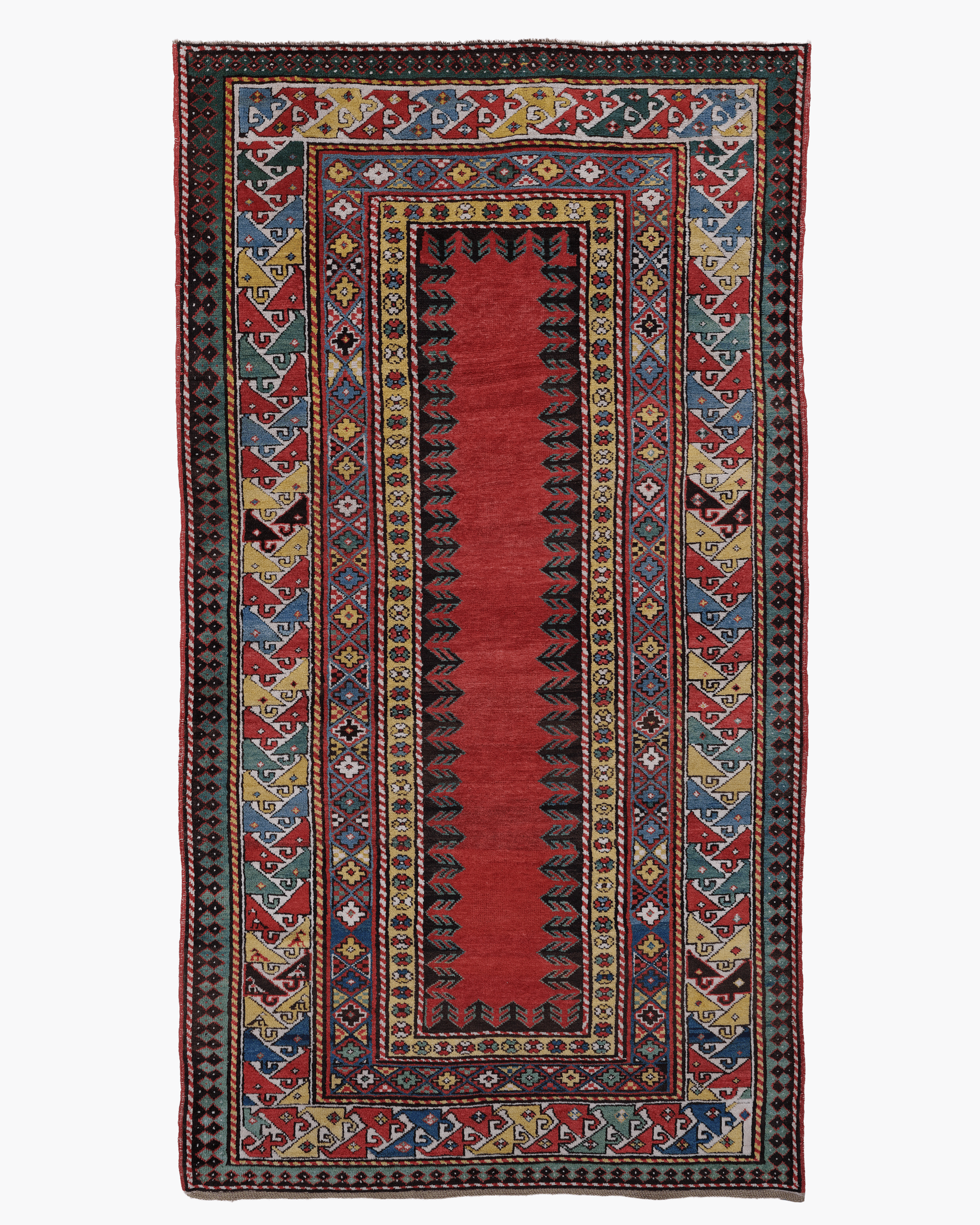 Woven with hand-spun wool and dyed with natural pigments, this Talish rug embodies both the technical mastery and artistic restraint of late 19th-century Caucasian tribal weaving. Its bold geometry and radiant palette make it a classic and highly desirable example of Talish craftsmanship.