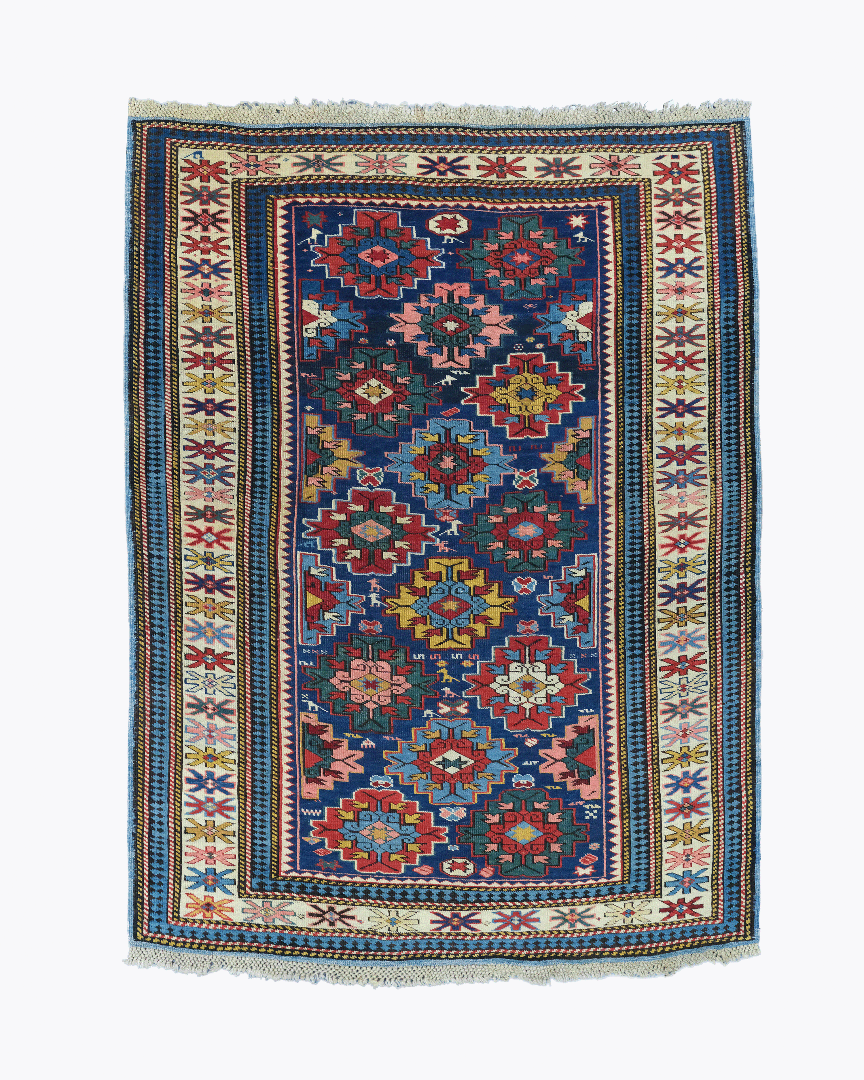 This striking rug was woven in the mid-19th century in the Shirvan region of the Eastern Caucasus. Shirvan rugs are celebrated for their tight knotting, refined geometric patterns, and vivid color palettes, making them some of the most distinguished examples of Caucasian weaving.